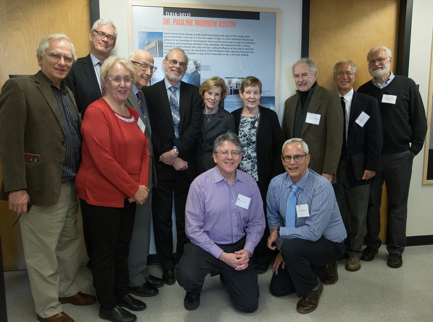 Modern meteorology would not be what it is today without contributions from MIT’s Pauline (Polly) Morrow Austin PhD ’42 and a long-time Director of MIT’s Weather and Radar Research Project, and last December, MIT recognized her influence on the field of weather radar with a centennial celebration. Throughout the day, MIT faculty, students and Austin friends and family gathered in the Department of Earth, Atmospheric and Planetary Sciences (EAPS) to remember her work, share personal moments, and discuss current weather and climate-related research. The events of the day built to the unveiling of an exhibit on the 16th floor showcasing Dr. Austin’s meticulous application of radar to weather study and MIT’s role in its development. A generous gift from one of Dr. Austin’s long time colleagues and MIT alum made this possible, as well as new equipment for the Synoptic Meteorology Lab, including a weather camera, weather stations and a display screen for meteorological data, all in Polly’s honor.